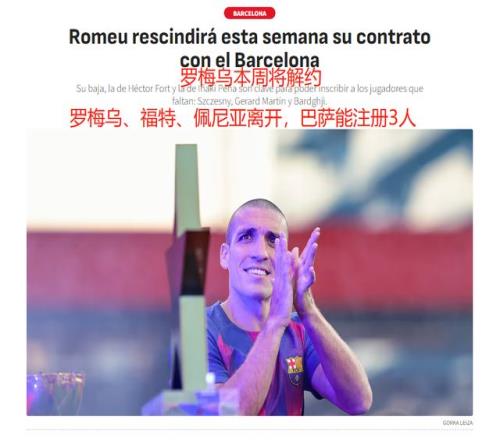 《阿斯报》透露,在清洗罗梅乌的工作中,巴萨取得巨大进展。双方同意提前1年结束合同,预计本周之内完成。罗梅乌将获得自由之身,可以重回赫罗纳,也可以去美职联养老。
