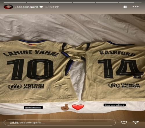 赛后,在此役担任首尔FC队长的林加德更新社媒,晒出亚马尔以及拉什福德的巴萨球衣,并配文: