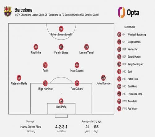 当年执教拜仁时就曾着力打造“德国FC”,弗里克非常看重能够坚决执行战术的本土精英,他在上任之初便明确了亚马尔、库巴西、阿莱士-巴尔德和佩德里的核心地位,卡萨多和费尔明的出场顺位一度也在弗兰基-德容和奥尔莫之前。赛季前半程背靠背对决拜仁和皇马,巴塞罗那的主力阵容中有6名U22球员,欧冠做客贝尔格莱德的比赛后半段,7名U22球员同时在场。