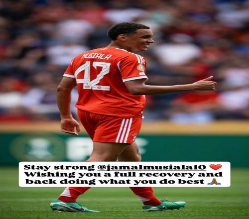 阿拉巴祝福穆西亚拉:保持坚强!祝你顺利、完全康复!