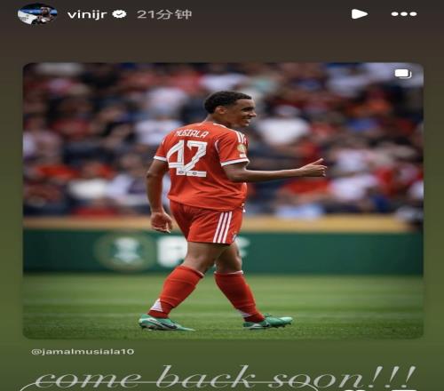 维尼修斯晒出穆西亚拉的赛场照,鼓励后者:祝福尽快回归!