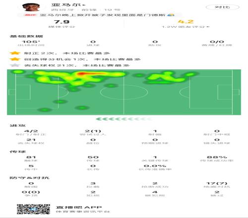 本场比赛,亚马尔首发出战105分钟,加时赛被换下,未能取得进球或助攻,丢失球权21次本场最多。亚马尔以表现不佳输球和错失冠军结束了17岁这一年。