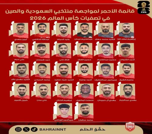 国足主场对手!巴林名单:大多来自巴林国内联赛1名西甲梯队小将