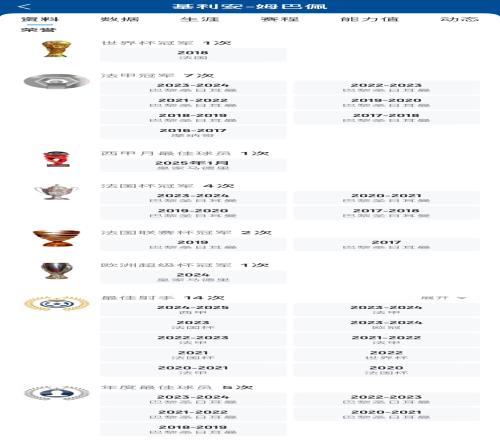 亚马尔vs姆巴佩生涯重要荣誉对比