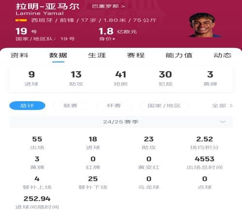 亚马尔本赛季的基础年薪约为300万欧,如今这一数字至少翻了十倍。