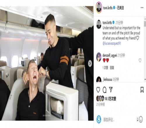 体育资讯5月25日报道宣称 皇马名宿克罗斯更新社媒动态,致敬即将离开皇马的老队友巴斯克斯。