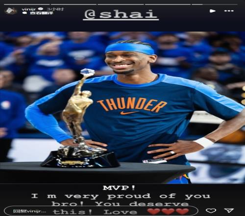 皇马球星维尼修斯祝贺亚历山大:MVP!兄弟为你感到骄傲,你值得!