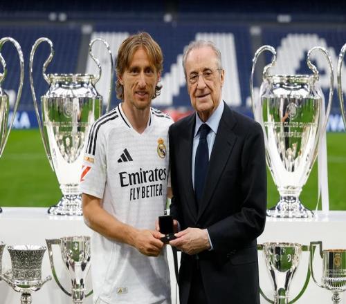 随后,弗洛伦蒂诺还为莫德里奇颁发了皇马金质镶钻徽章,以表彰他所做出的杰出贡献。