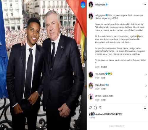 罗德里戈更新社交媒体晒照发公开信告别安切洛蒂。
