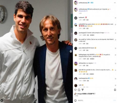 作为皇马的忠实粉丝,阿尔卡拉斯晒出两人合照,并配文写道:我非常敬佩你,你是真正的传奇