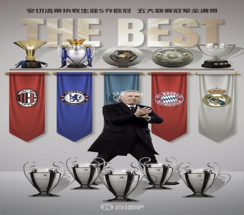 俱乐部执教生涯,安切洛蒂实现了五夺欧冠,并且包揽五大联赛冠军,是足坛历史第一人。