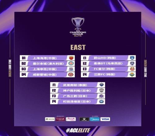 亚冠精英抽签:海港申花蓉城对手相同仅赛程不同