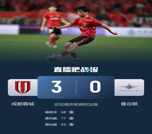 直播吧08月12日报道宣称 刚刚,成都蓉城3-0曼谷联,成功晋级亚冠精英联赛正赛。