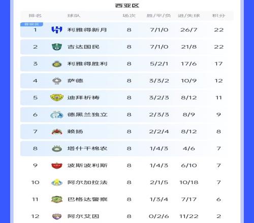 其中利雅得新月首回合0-1落败但是次回合干脆利落4-0解决战斗,利雅得胜利首回合0-0打平次回合同样3-0轻松拿下,吉达国民则是两回合直接双杀对手晋级。此外这三队也是联赛阶段西亚区的前三名,积分断层领先。