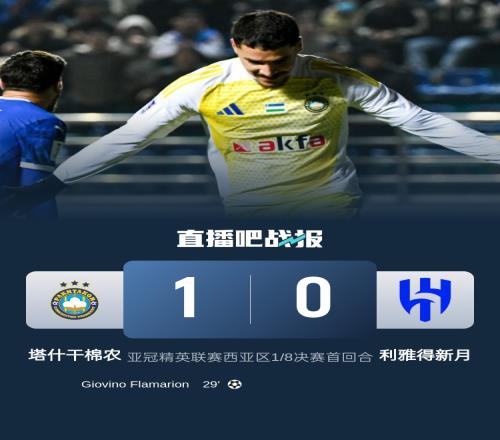 体育资讯03月05日报道宣称 亚冠精英联赛西亚区1/8决赛首回合,利雅得新月0-1不敌塔什干棉农,客场告负。