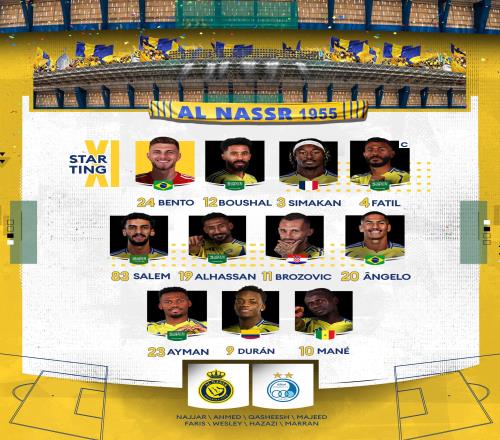 利雅得胜利首发:24-本托、3-西马坎、4-法蒂尔、12-纳瓦夫、83-纳吉迪、19-哈桑、11-布罗佐维奇、23-叶海亚、20-安吉洛、10-马内、9-杜兰