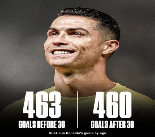 C罗30岁前进463球,30岁后进球数定格在460球,仅差3个