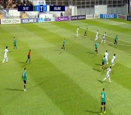 第90分钟,伦纳抽射破门梅开二度,大埔队将比分追至3-3平。