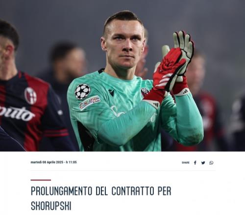 博洛尼亚官方球队行使续约选择权与门将斯科鲁普斯基续约至2026