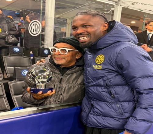体育资讯3月12日报道宣称 今天凌晨,国米在欧冠1/8决赛淘汰了费耶诺德,赛后小图拉姆晒出了自己与名导斯派克-李的合照。