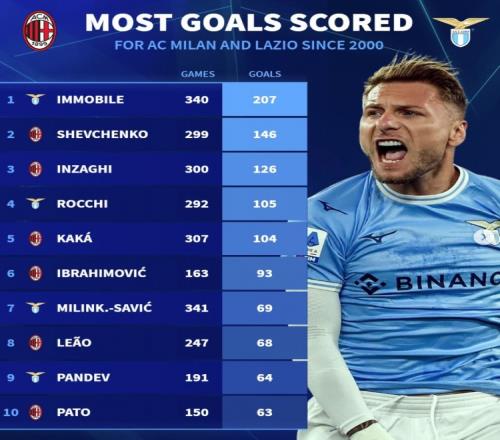 米兰&拉齐奥新世纪射手榜: