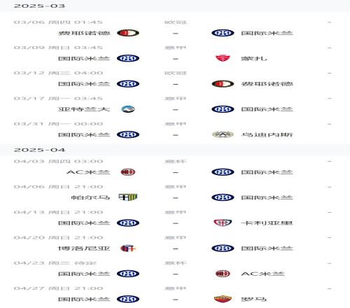 国米未来两月赛程