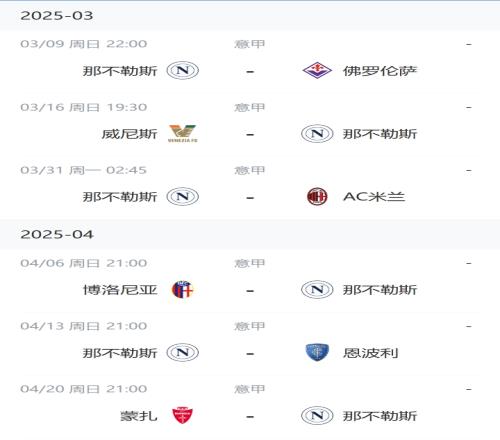 那不勒斯未来两月赛程