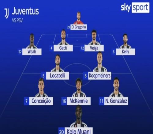 意大利天空体育预测了尤文本场比赛的首发阵容,穆阿尼、孔塞桑、库普梅纳斯、维加、凯利在列。