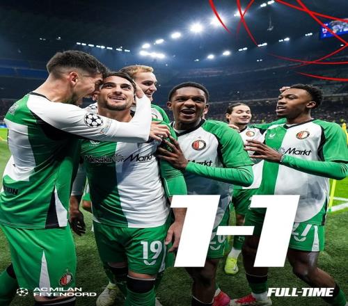 体育资讯2月19日报道宣称 费耶诺德在本轮欧冠客场1-1逼平米兰,总比分2-1晋级欧冠十六强战。