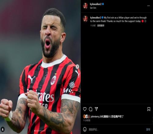 沃克写道:作为米兰球员的首场胜利,我们晋级了半决赛!非常感谢大家今天的支持。