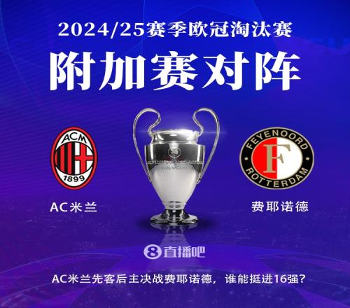 体育资讯01月31日报道宣称 欧冠淘汰赛附加赛抽签结果出炉,AC米兰抽中费耶诺德,将展开先客后主两回合较量,争夺一个欧冠16强名额。