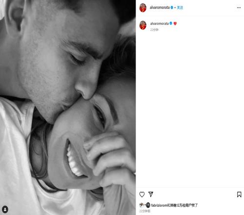 重归于好莫拉塔社媒晒照亲吻妻子,两人曾在5个月前宣布离婚