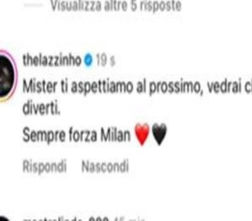 歌手Lazza也看到了新闻报道,他在《米兰体育报》社交媒体的评论区中写道:“教练,下次我们等你一起来,保证你会玩得很开心的。米兰永远加油(Sempre forza Milan)”