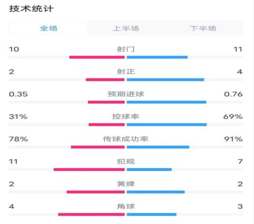 控球率31%-69%