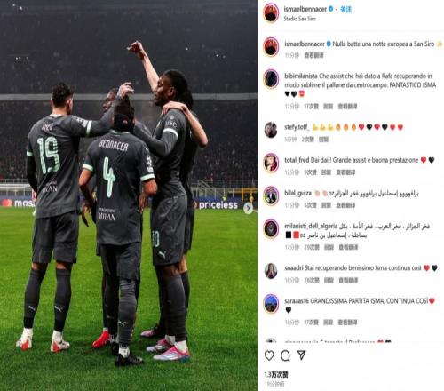 本纳塞尔也在赛后通过社媒晒出和队友相拥庆祝的照片,并配文:“没什么能比得上圣西罗的欧冠之夜。”