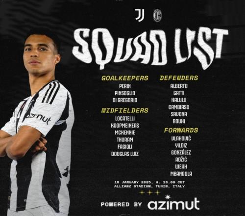 尤文对米兰大名单:新援阿尔贝托科斯塔入选,弗拉霍维奇回归
