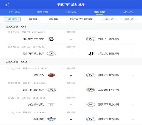 那不勒斯接下来将面对魔鬼赛程,先后对阵亚特兰大(第3)、尤文(第5)、罗马(第10)、乌迪内斯(第9)、拉齐奥(第4)、科莫(第15,同样魔鬼赛程)。