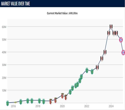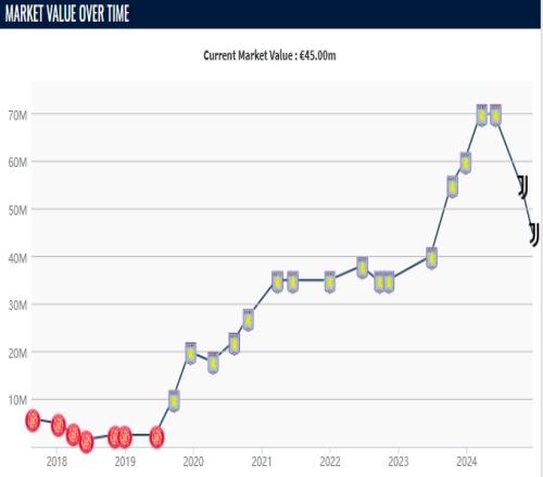 身价方面,26岁的道格拉斯-路易斯从刚加盟时的7000万欧,跌至现在的4500万欧;29岁的帕利尼亚则是从5500万欧跌至4000万欧。
