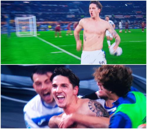 扎尼奥洛在进球后丝毫不压抑情绪,并且还激情狂奔脱衣庆祝。