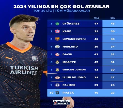 体育资讯11月12日报道宣称 德国转会市场近日统计了2024年前十联赛射手榜,其中一个熟悉的名字赫然在列,目前效力于土超球队伊斯坦布尔的皮亚特克排名第十。