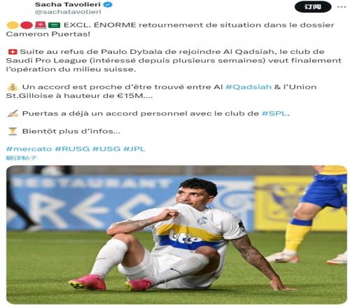 Sacha Tavolieri指出,由于迪巴拉拒绝加盟,沙特升班马卡迪西亚转而引进普埃尔塔斯,他们已经与这位26岁的中场谈妥个人条款,接近与圣吉罗斯达成协议,转会费1500万欧元。