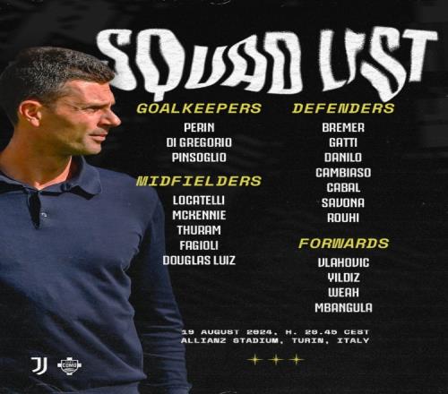 体育资讯8月19日报道宣 北京时间明天凌晨,尤文将在意甲首轮比赛中主场对阵科莫,尤文公布了此役的球员名单,道格拉斯-路易斯、K-图拉姆、麦肯尼在列,米利克、基耶萨、科斯蒂奇缺席。