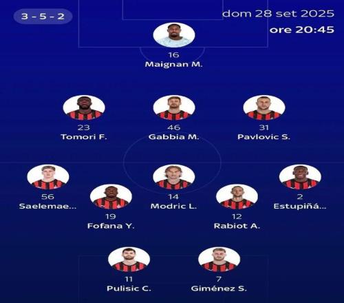 据记者luca bianchin报道,普利西奇、希门尼斯作为对阵那不勒斯的首发球员接受了测试。莱奥的身体状况只能出场一段时间,他可能在下半场替补出场。