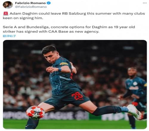 罗马诺透露,达吉姆可能在今夏离开萨尔茨堡,多家俱乐部有意签下这位小将,意甲和德甲都是他具体的选择,达吉姆已与CAA Base经纪公司签约。