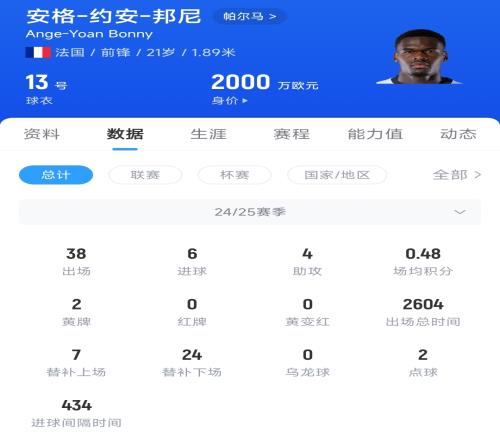 21岁的法国中锋邦尼,上赛季代表帕尔马出战38场比赛,贡献6粒进球和4次助攻,目前邦尼的德转身价为2000万欧元。