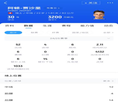上赛季,贾沙里为布鲁日出场52场,取得了4粒进球和6次助攻,目前其德转身价为3200万欧。