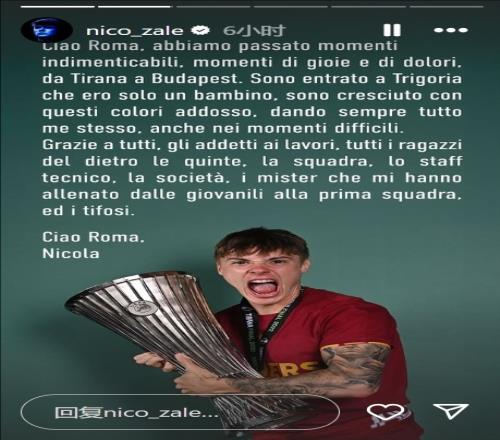 体育资讯6月25日报道宣称 不久前,永久转会加盟国米的扎莱夫斯基更新了社交媒体,告别了老东家罗马。