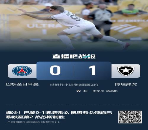 体育资讯06月20日报道宣称 世俱杯小组赛B组第二轮,巴黎0-1不敌博塔弗戈。