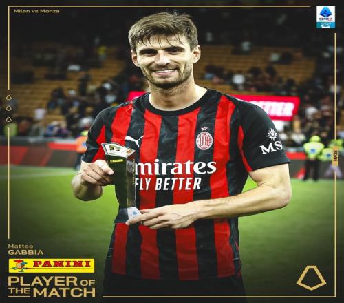 头球首开纪录,官方:加比亚当选米兰vs蒙扎全场最佳球员