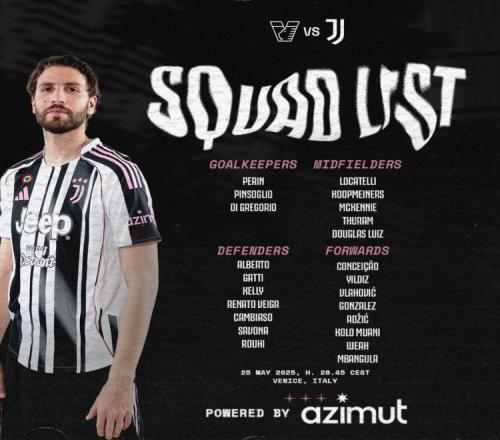 尤文公布客战威尼斯大名单:伊尔迪兹、穆阿尼、DV9领衔